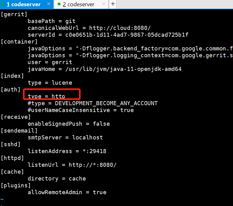 3、更改gerrit.config文件,将验证模式变更为http后,重新启动gerrit