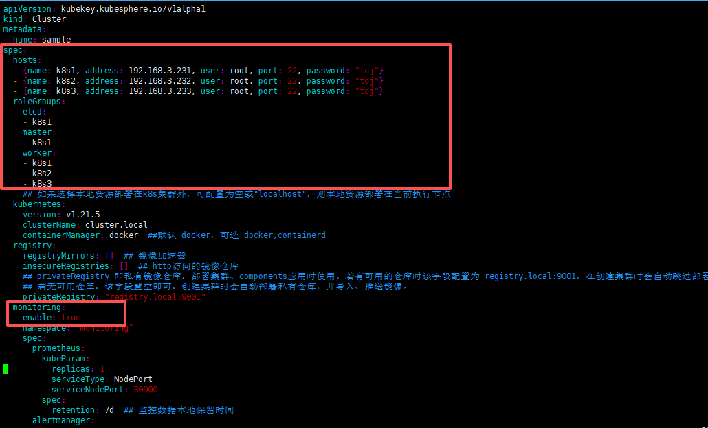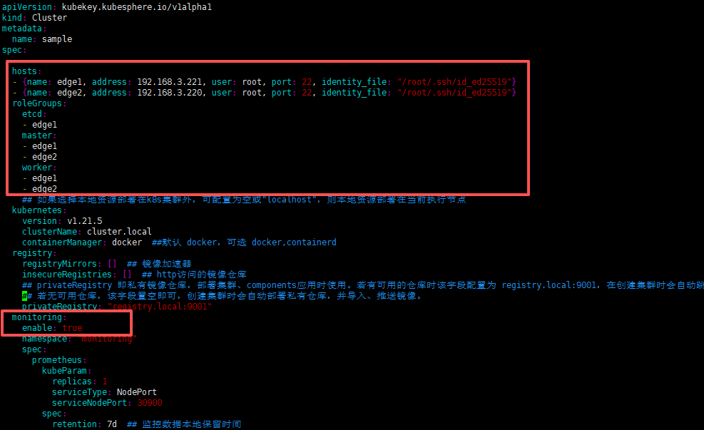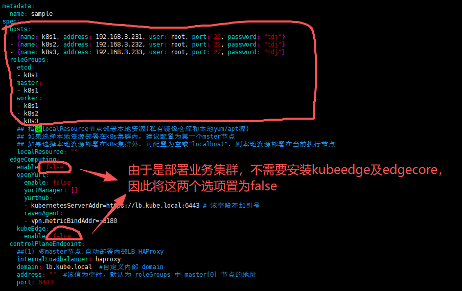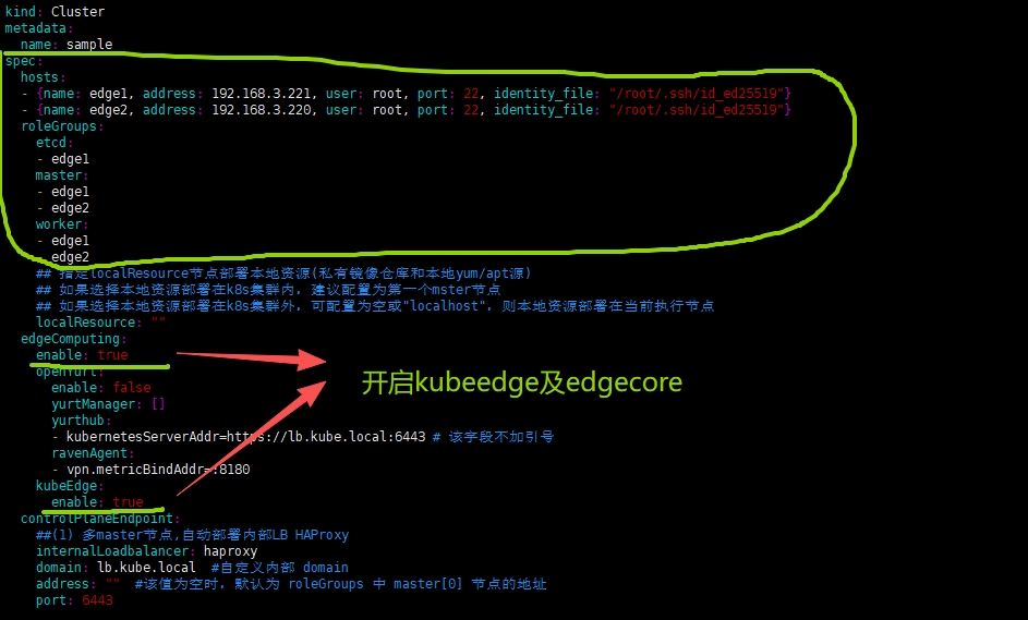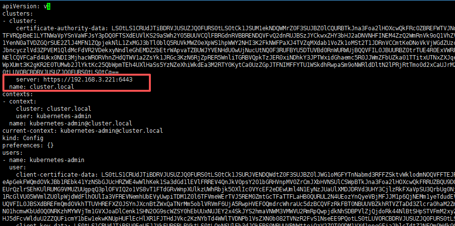 编辑/opt/edge/admin.conf,修改内容如下,这个192.168.3.221是edge集群的两个主节点中的edge1节点的ip地址(可以用任何一台主节点的ip地址)